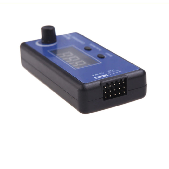Can be synchronized output control 4 servos and used to compare the performance steering gear control of the steering servo output signal can be accurate to 2us (1 milliseconds = 1000 microseconds), you can test the steering gear is able to respond to subtle changes With PPM signal test function in the display, the input PPM signal changes while the input the PPM signal synchronization output to the servo Energized automatically enter manual mode (Manual) 20us 50H analog servo signal cycle, frequency 50Hz, rotary potentiometers to decrease or increase the width of the output pulse.