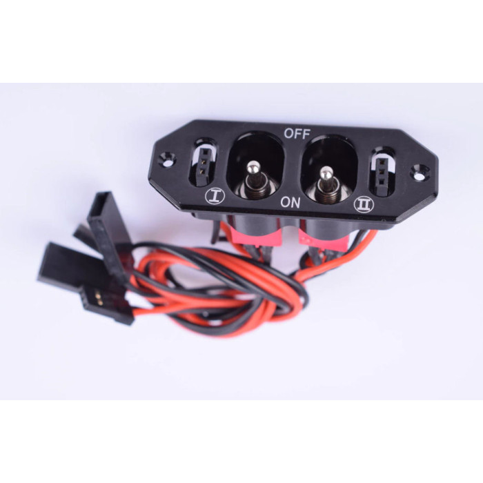 This switch comes with 4 cable lock connector. RC Heavy Duty Switch For Gas Planes. Comes with battery charge outlet and fuel dot. Made of CNC aluminum in anodized gold color. Very strong and light weight.