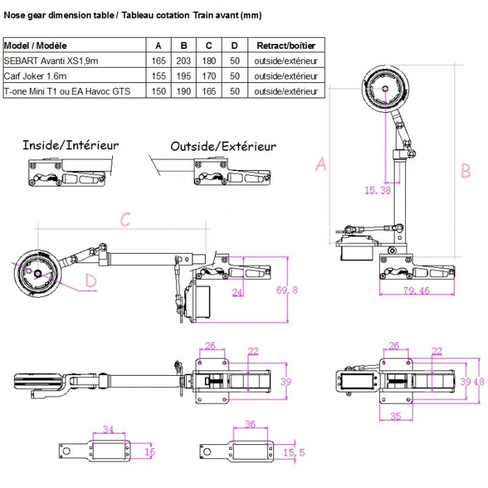 - 1x Scale metal strut for nose gear equiped with 50mm wheel and Plate