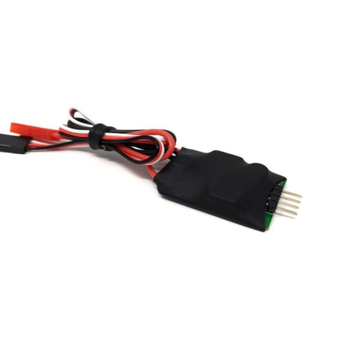 - Operates off of the flight battery or a separate 7.2V-30V battery.