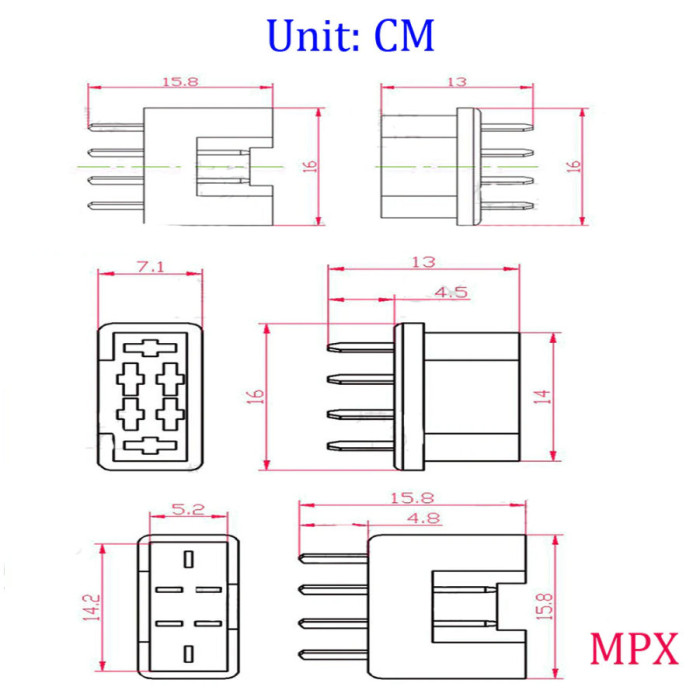 Dimension: 13 x 16 x 7 mm (M), 16 x 16 x 7 mm (F)