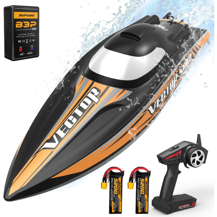 Volantexrc RC boat Vector SR80 is designed with capsize recovery and outstanding power system, top speed reaching 45 MPH. The unibody ABS hull provides extreme durability without worries in high speed running.